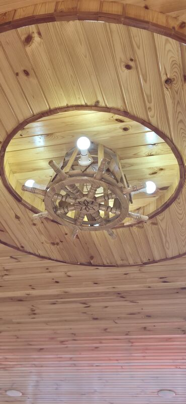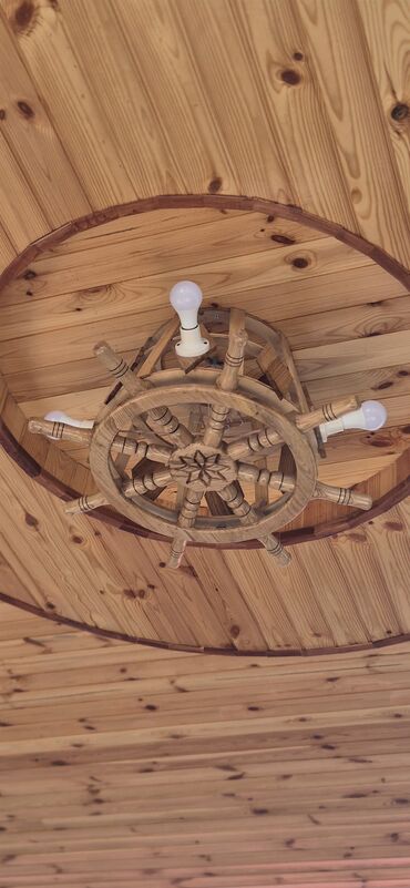 Taxta tavan üçün dekorativ işıqlandırma – “sükan” formalı lüstr