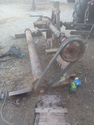 - Şəkildəki komponentlər: şkiv-kəmər sistemi, şaft, diferensial bloku, montaj çərçivəsi və traktor qoşma hissəsi.