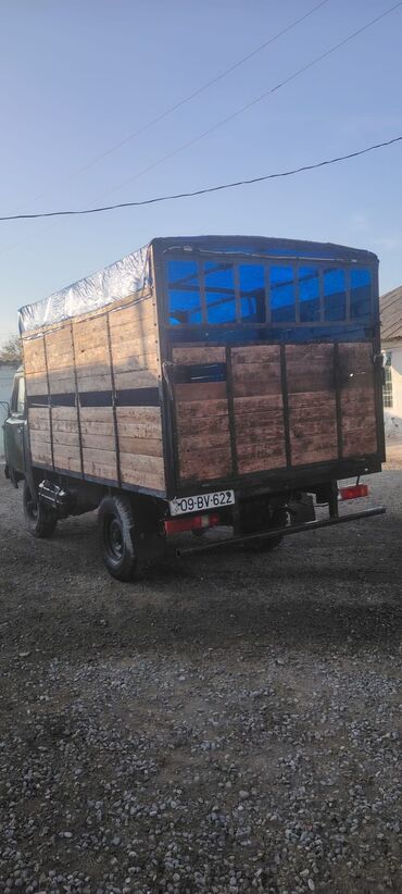 UAZ yük avtomobili – taxta bortlu kuzovlu, hərəkətə hazır, praktik və çoxşaxəli istifadə üçün uyğun. Xüsusiyyətlər: - Kuzov: yüksək bortlu taxta platforma, üç tərəfli açılan qapalı-bort sistemi; y...