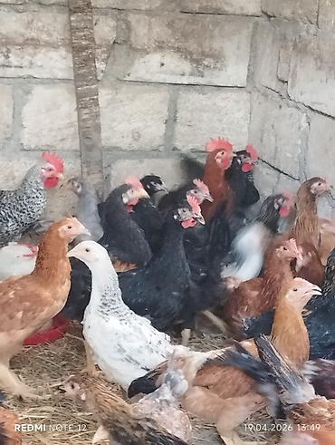 Təsvir:1-i 25 Azn 6 sı 150 Azn - Şəkillərdə müxtəlif rənglərdə (qara-qəhvəyi, qarışıq ağ-qara) xoruzları. - Güclü fiziki quruluş, hündür daraq və quyruq lələkləri ilə seçilirlər. - Açıq həyət şəra...