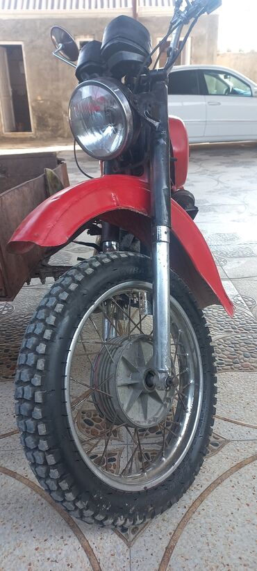 - Mühərrik: hava ilə soyudulan, karbüratorlu, yan ayaq dayağı və ayaqla işə salma qolu görünür