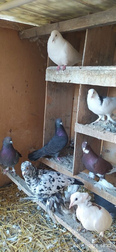 - Şəkillərdə müxtəlif rəng və cizgilərdə dekorativ/uçuş göyərçinləri göstərilir: ağ, qara-ağ, qırmızı-qəhvəyi, boz, çilləli və mərmər rənglər.