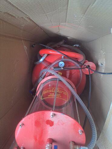 - Əlavə aksesuar: Köhnə yağın toplanması üçün qırmızı rəngli şaquli yağ toplama qurğusu (üst huni kasası, şəffaf səviyyə silindri, manometr, şlanqlar və klapanlarla)