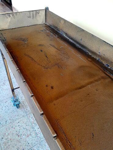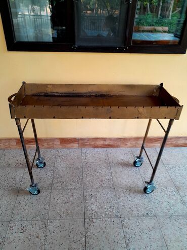 Kabab manqalı, hündürlüyü 80 sm, uzunlugu 80 sm, eni 42 sm, qalın 8 lik vaqon dəmiri ilə hazirlanib
