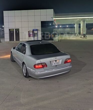 Mercedes-Benz E-Class (W210) sedan - Kuzov: sedan, gümüşü rəng - Mühərrik: benzin (fotoşəkildə avtomatik ötürmə qutusu görünür) - Ötürmə: avtomat - Salon: boz rəngli interyer, taxta dekor panellər...