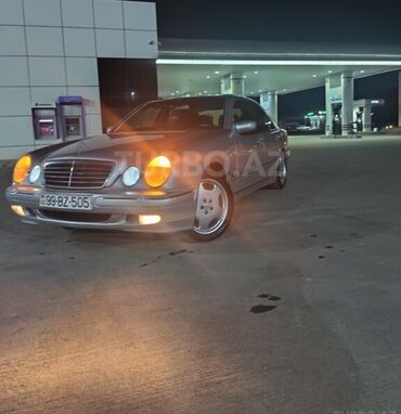Mercedes-Benz E-Class (W210) sedan - Kuzov: 4 qapılı sedan, tünd boz rəng - Nömrə: AZ 99-DV-073 - Ön: xrom radiator barmaqlığı, Mercedes ulduzu, dördgöz faralar, sis faraları - Disklər: 17'' oriji...
