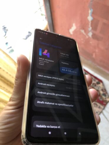 POCO smartfon - Ekran: 120 Hz maksimum yeniləmə sürəti (istəyə görə 60 Hz rejimi də var) – axıcı skroll və oyun təcrübəsi. - Sistem: MIUI Global 13 (POCO üçün), versiya 13.0.8. - Android təhlükəsi...