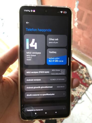 POCO X3 Pro smartfon - Model: POCO X3 Pro (MIUI Global 14.0.2, Android 12) - Yaddaş: 128 GB (şəkildə 41.1 GB istifadə edilib) - Ekran: Tam ekran, jestlə idarəetmə - Şəbəkə: 4G/LTE göstərilir - Pro...