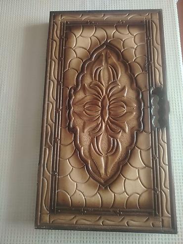 Ağac oyma nərd-taxta dəsti - Material: tam ağac (əl işçiliyi oyma naxışlar) - Rəng/ümumi görünüş: qəhvəyi tonlarda antik effekt, dərin relyef ornamentlər - Dizayn: ikiüzlü qapaq-kompozisiya; xaric...