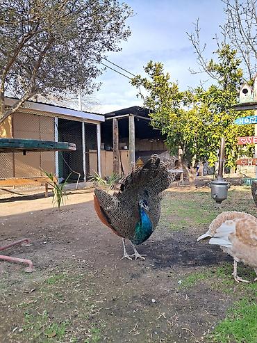 Erkək tovuzquşu satılır. - Yaş: 5 il - Sağlamdır - Parlaq mavi-yaşıl boyun və baş, uzun quyruqda “göz” naxışları - Həyətyanı sahə və ya mini-ferma üçün dekorativ quş kimi uyğundur, digər quşlarla ...