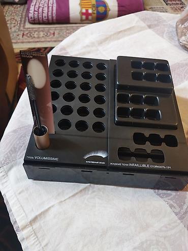 Akril kosmetika və bəzək əşyaları üçün orqanayzer - Şəffaf, möhkəm akrildən - Yuxarı hissə: çoxsaylı bölmələr – pomada, fırça, layner, lak və s. üçün - Aşağı hissə: 3 çekmece (qara içlikli) – zinə...