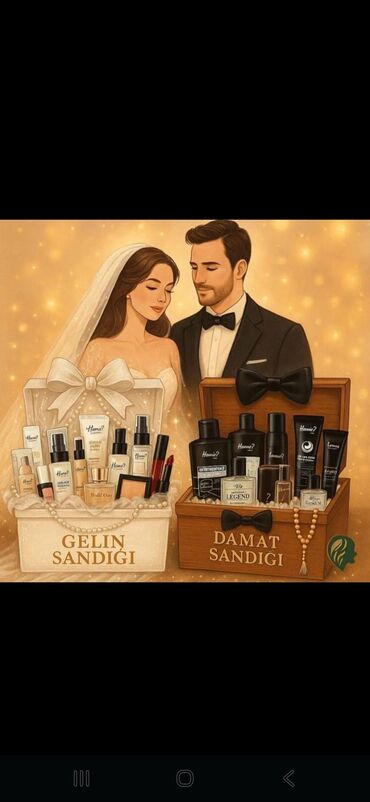 - Damat Sandığı: kişi üçün duş geli, şampun, saç və bədən baxımı məhsulları, ülgüc/saqqal sonrası seriya görünən şüşələrdə, kişi ətiri (Legend və s.) ilə tamamlanır. Təmizlik, təravət və uzunmüddətli ətir üçün komplekt həll.