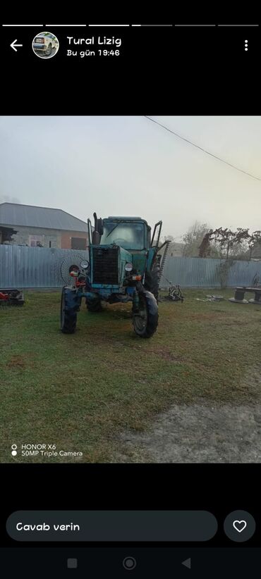 Belarus MTZ tipli mavi traktor - Güclü dizel mühərrik, arxa təkərdən çəkiş (RWD) - Kabinli, geniş görünüşlü şüşələr, açılan qapılar - Ön və arxa işıq sistemi: faralar, fənərlər, əlavə LED işıq...