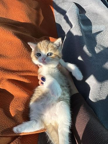 Ağ tüklü, mavi gözlü balaca pişik balası. - Yaş: təxminən balalıq dövrü (kiçik ölçü) - Rəng: tam ağ - Göz rəngi: açıq mavi - Xüsusiyyətlər: zərif quruluşlu, ayıq və oynaq; pəncərə kənarında sakit o...