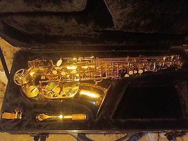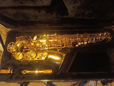 Qızılı rəngli alto saksofon – tam komplekt. Real alıcıya endirim olunacaq Xüsusiyyətlər: - Korpus: laklı qızılı metal, oyma naxışlı boru və qolucuqlar - Mexanika: standart alto dizayn, tənzimləmə v...