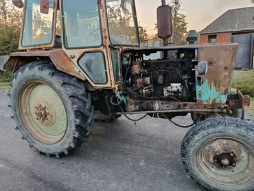Köhnə sovet istehsalı təkərli traktor (kabinalı) Xüsusiyyətlər və təsvir: - Kabinalı konstruksiya, yan və arxa şüşələr var - Arxa təkərlər iri ölçülü, ön hissə dar ön təkər bazası ilə - Dizel mühə...