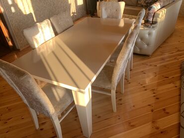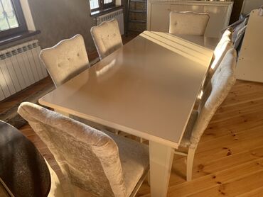 Ağ rəngdə yemək masası və 6 ədəd stul dəsti.