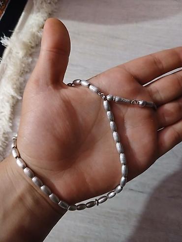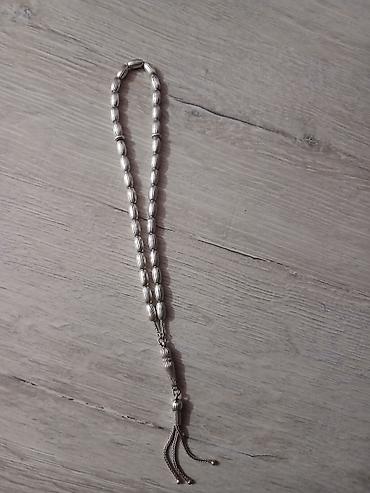 Şəkillərdə göstərilən təsbeh tamamilə gümüş dənələrdən qurulub, dekorativ püsküllə tamamlanıb.