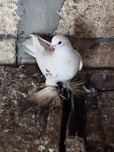 bala 18*19 tük tay bala - Növ: dekorativ/ev göyərçinləri - Rəng: tamamilə ağ (birində yüngül krem çaları görünür) - Quyruq: uzun və yelpikvari, səliqəli lələklər - Gözlər: tünd, diri baxışlı - Gag...