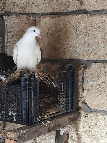 Güvercinlər – müxtəlif rəng və naxışlarda ev quşları - Növ: ev güvercini (uçuş və yetişdirmə üçün) - Rənglər: ağ, qızılı‑krem qarışıq, boz ləkəli, qara‑ağ - Say: bir neçə fərd qrup halında - Saxla...