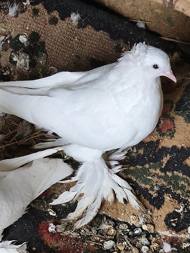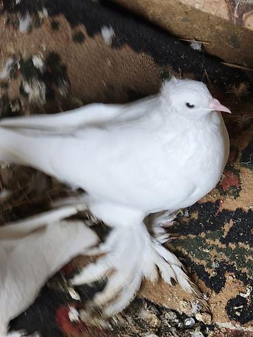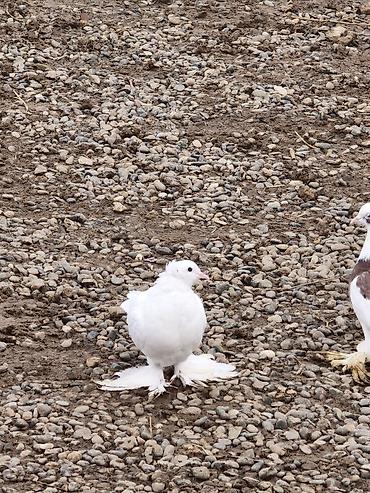 Növ: Baxça/ev üçün dekorativ göyərçinlər (xüsusi rəngli, çüt ayaqları tüklü) Rəng: Ağ-göy/qaranlıq kürəkli, bədən ağ, qanadlarda tünd ləkələr Xüsusiyyətlər: - Baş və boyunda yüngül yelpik/çəngəllik...