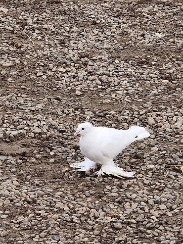 Ağ rəngli dekorativ göyərçin - Rəng: əsasən ağ, qara quyruq ucları və kürək nahiyəsində qara naxışlar - Boyun hissəsində tünd yaxalıq, dimdik açıq rəngdə - Ayaqda halqa - Qanad və quyruq lələkləri...