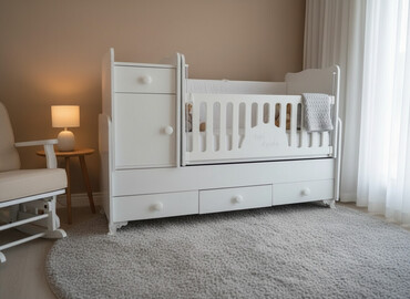 Ağ rəngli çoxfunksiyalı uşaq beşiyi
