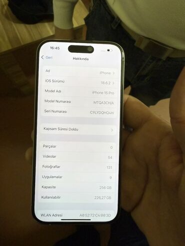 IPhone 15 Pro, 256 GB, Gümüşü, Barmaq izi, Face ID, Zəmanət