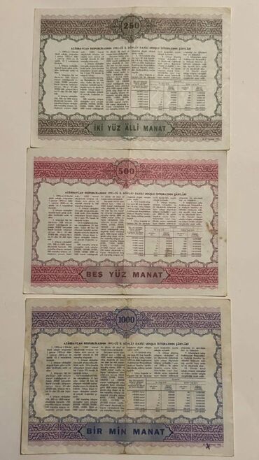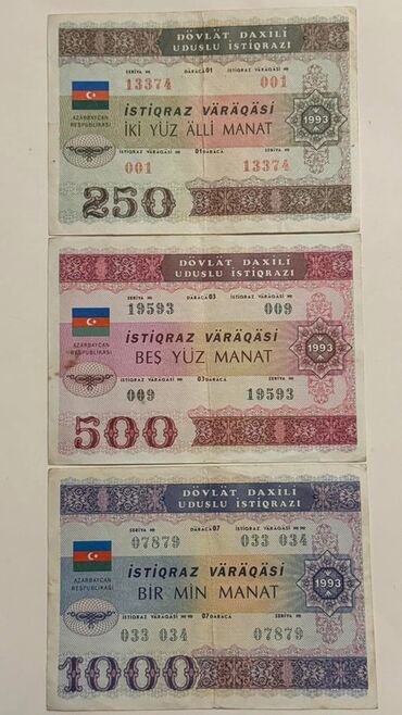- Üç ədəd orijinal istiqraz vərəqəsi toplusu.