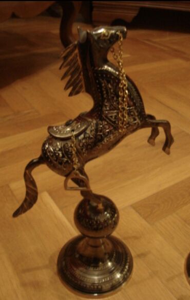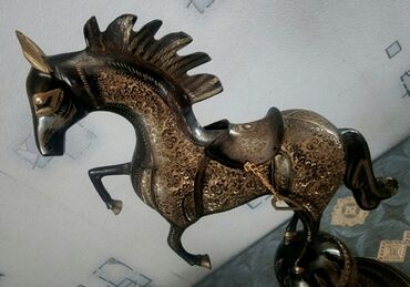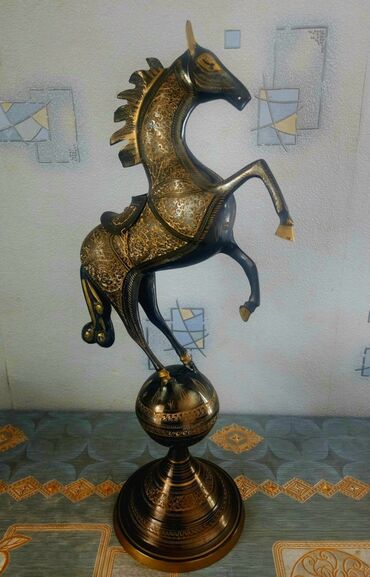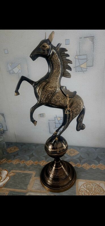 At heykəli. Əlvan metaldan hazırlanmışdır. Əl işidir. Hündürlüyü 60 sm.