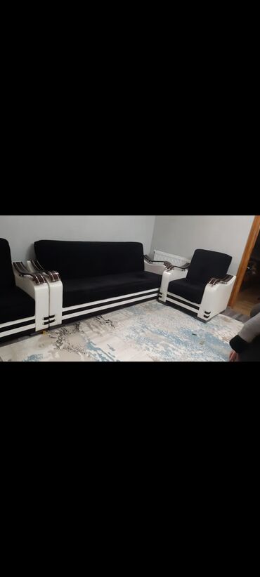 Klassik dizaynlı yumşaq mebel dəsti Tərkib: - 1 ədəd 3 nəfərlik divan - 2 ədəd kreslo Dizayn və material: - Qəhvəyi və bej rənglərin kombinasiyası - Naxışlı parça üzlük, yumşaq sünger dolğu - Tax...