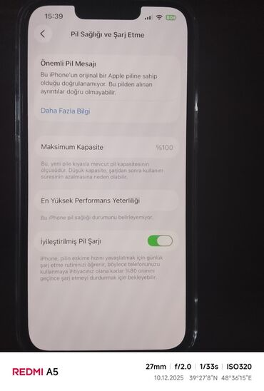 - Bildiriş: Pil bölməsində “Bu iPhone’un orijinal bir Apple pilinə sahib olduğu doğrulanamıyor” mesajı göstərilir