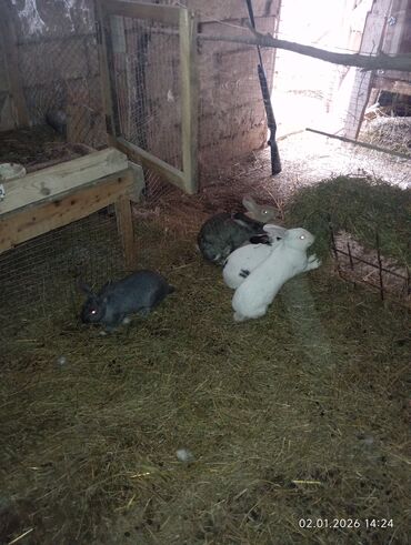 1 erkək 1 yaş. 2 dişi 9 aylıq. 16 ədəd 1 aylıq bala. 1 erkək 1 dişi 3 ay yarımlıq. Cəmi 21 əd təmiz qan kaliforniyalar. Ata analar xaricdən gəlib. kom halda satılır. Hamsı birlikdə 300 manat son qi...
