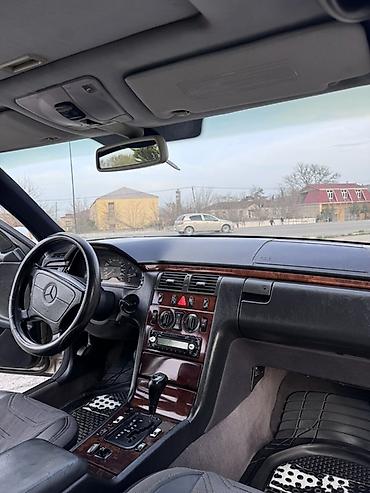 Mercedes-Benz E-Class W210 sedan - Kuzov: 4 qapılı sedan, gümüşü rəng - Mühərrik və ötürmə: benzin, avtomat sürətlər qutusu (konsolda tiptronic/seçim düymələri) - Salon: tünd mavi parçalı oturacaq...