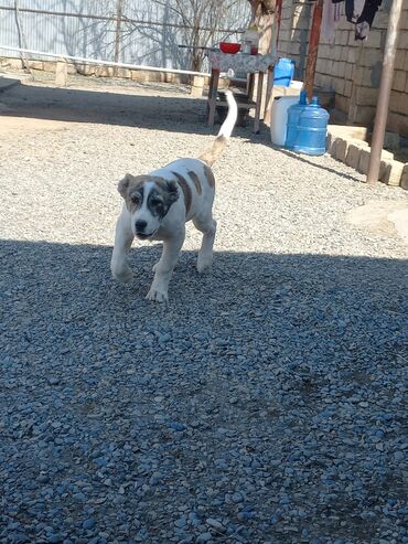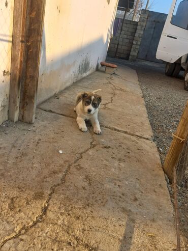 İt balası – böyük cins heyvan (çoban tipi) - Cins tipi: iri həcmli, çoban/ovçu tipli it (şəkillərdə ana ilə birlikdə) - Rəng: ağ-qəhvəyi, üzdə qara maska, sinə və pəncələr ağ - Yaş qrupu: baladır ...
