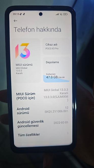 - Yaddaş/Saxlama: 256 GB daxili yaddaş (şəkildə 47 GB istifadə edilib)