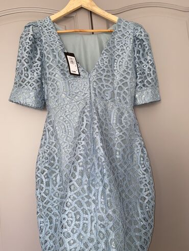 Mavi (parlaq kobalt) rəngli qadın paltarı - Model: qolsuz, dizdən bir qədər yuxarı mini/kokteyl kəsimi - Yaxa: ön tərəfdə V-yaxa - Arxa: dərin V-kəsim və ortadan keçən dekorativ fermuar - Parça: h...