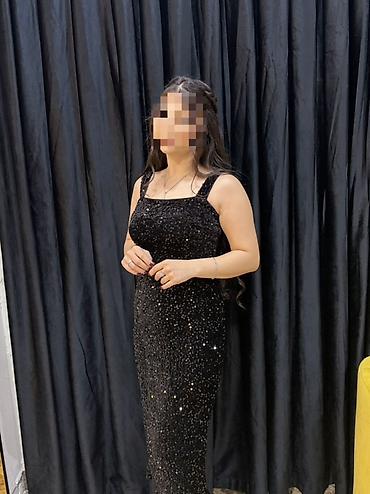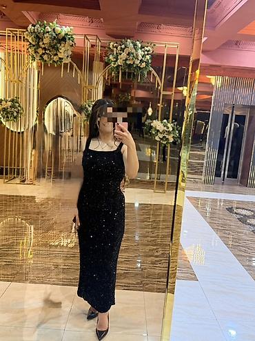 Parıltılı qara ziyafət geyimi.................................................................................................................................. - Model: Dizdən aşağı uzunluqda, düz ...