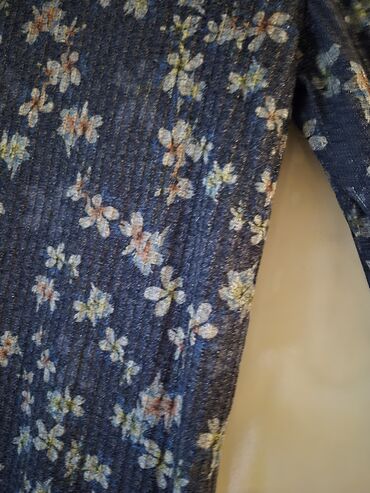 - Rəng və naxış: boz-melanj əsas; üzərinə geyinilən pardaxlı tünd mavi fonda xırda çiçək naxışlı üst.