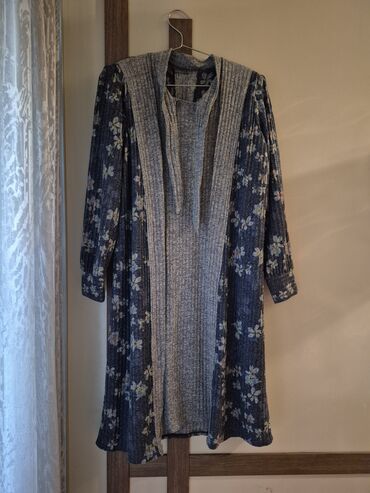 - Üst hissə: uzunqol, eyni uzunluqda nazik trikotaj kardiqan/üst don; ön hissədə boz panel detal, arxa və qollar çiçəkli.