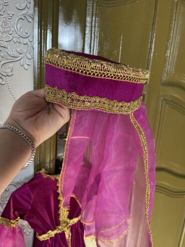 - Dəst: paltar + uyğun baş örtülü papaq (qızılı krujeva və tül şarf əlavəli)