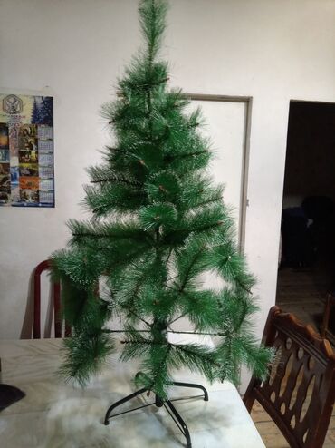 Süni şam ağacı ‼️‼️‼️TƏCİLİ SATILIR - Material: sıx plastik iynələr, yaşıl rəng - Hündürlük: təxminən 1,2–1,4 m (masa üzərində çəkilmiş fotoya əsasən) - Konstruksiya: 3 ayaqlı metal dayaq, sabit ...