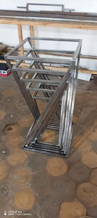 Mağaza avadanlığı – metal geyim asqıları və vitrinalar - Müxtəlif ölçü və formalarda metal geyim stendləri: düz, U‑şəkilli, dairəvi yarımbüdcə forması, tək və ikiqat səthli modellər - Rənglər: əsa...