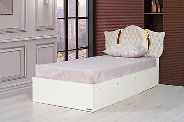 - Dizayn: Müasir və klassik üslubda müxtəlif başlıqlı tək çarpayılar. Kapitone işləməli yumşaq başlıq, daş düyməcikli və ya panel tipli variantlar. Bəzi modellərdə dekorativ qızılı ayaqlar və naxışlı taxta çərçivə.