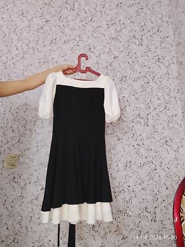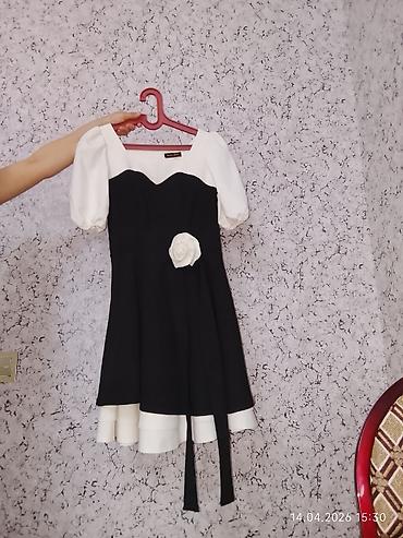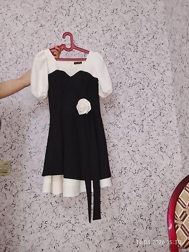 Real alıcıya endirim olunacaq. Qadın paltarı – qara-ağ, qısa, romantik stil