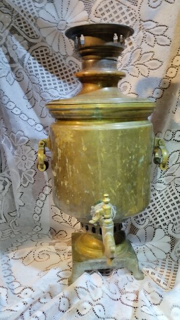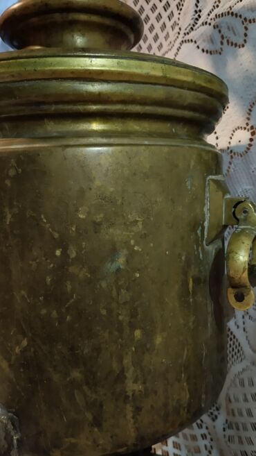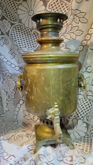 Qeyd: Üzərində orijinal damğa izləri və klassik konstruksiya detallarını saxlayan köhnə rus tipli samovar dizaynıdır. Kolleksiyaçılar və antik dekor həvəskarları üçün dəyərlidir.