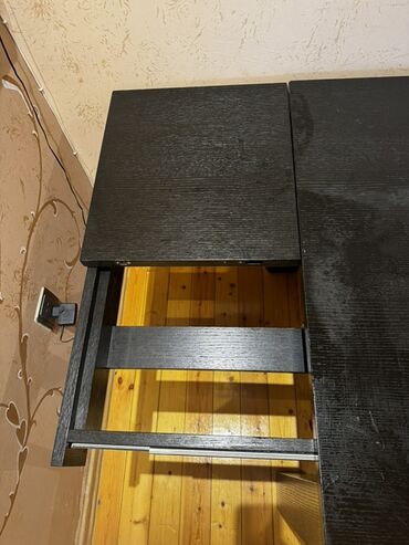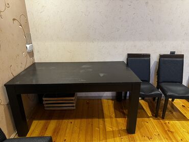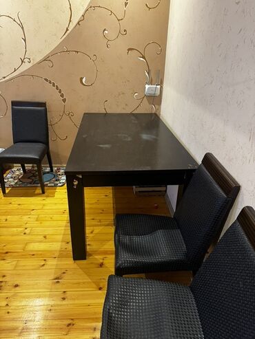 Qara rəngdə genişlənə bilən yemək masası və 3 ədəd stul dəsti.