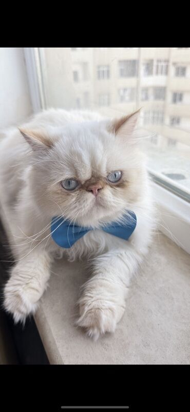 Ağ rəngli, uzun tüklü, yastı-burunlu, mavi/göy gözlü balaca pişik balaları. Yumşaq, şux və sakit xarakterli, ev şəraitinə uyğun. Xüsusiyyətlər: - Qısa, yastı burunlu, iri, yumru baş və böyük gözlər...