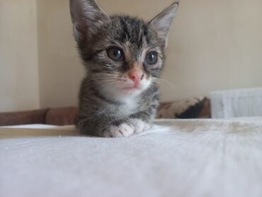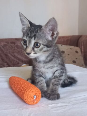Sevimli balaca pişik balası - Rəng: qəhvəyi-boz tabby (xətdarlı) naxışlı tüklər, boğaz və ağız nahiyəsində açıq rəng - Gözlər: iri və ifadəli, parlaq - Qulaqlar: uclu, diqqətli görünüşlü - Xasiyyə...