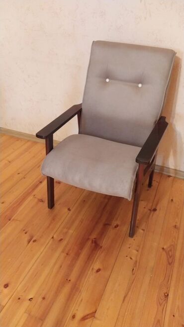 - Komfort: Yastıqlı oturacaq və bel hissəsi, arxada dekorativ iki düymə; dərin oturuş və dayanıqlı qoltuqaltılar.